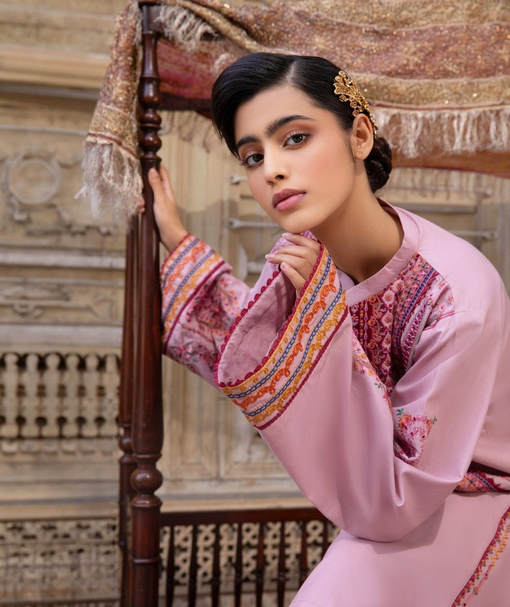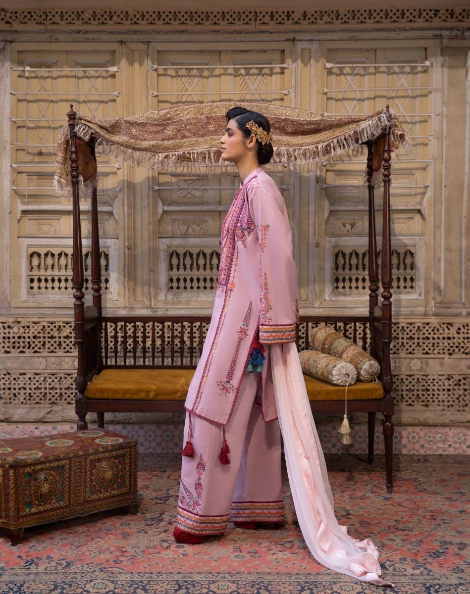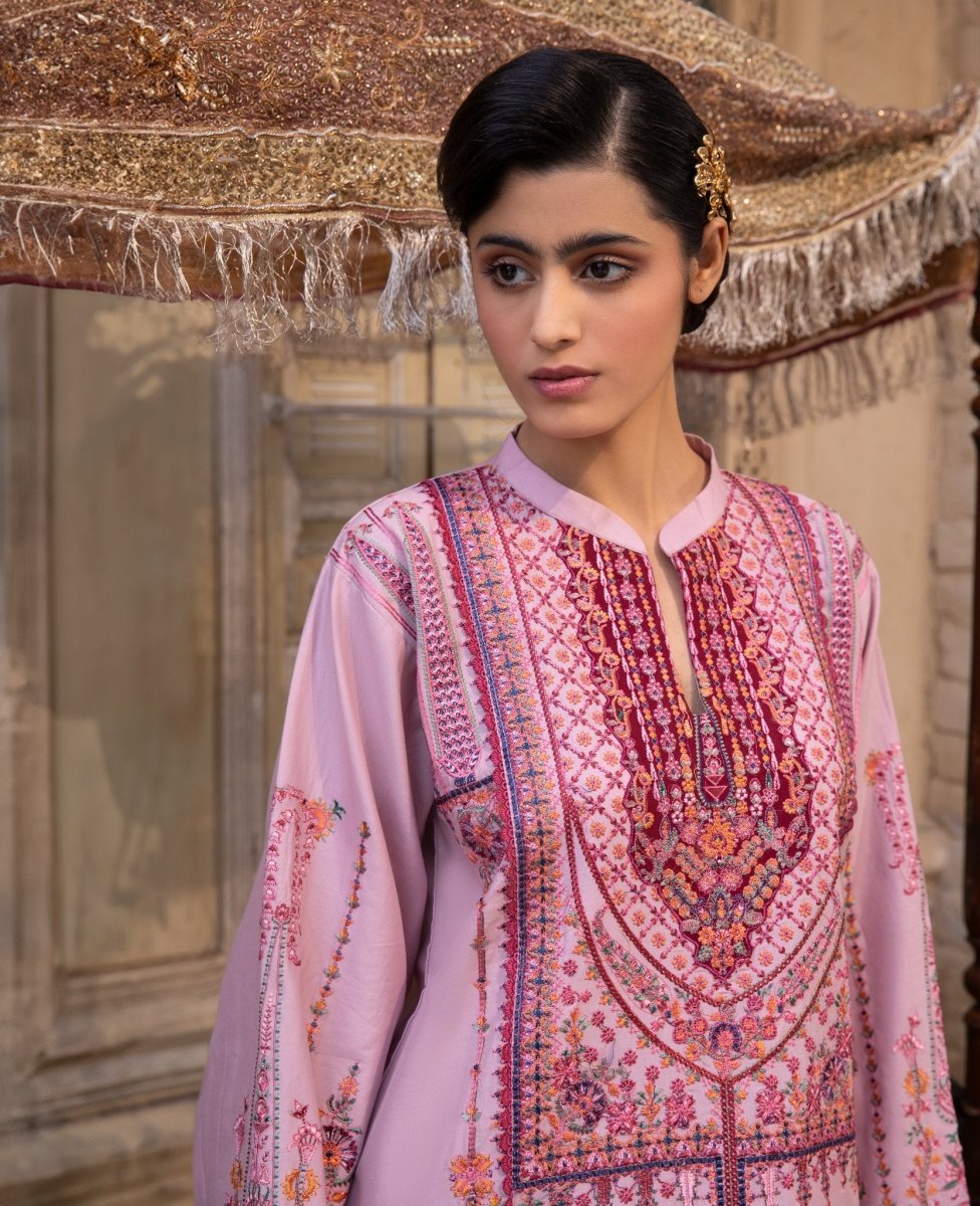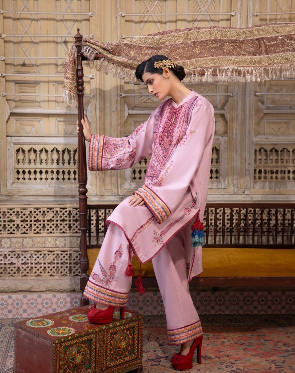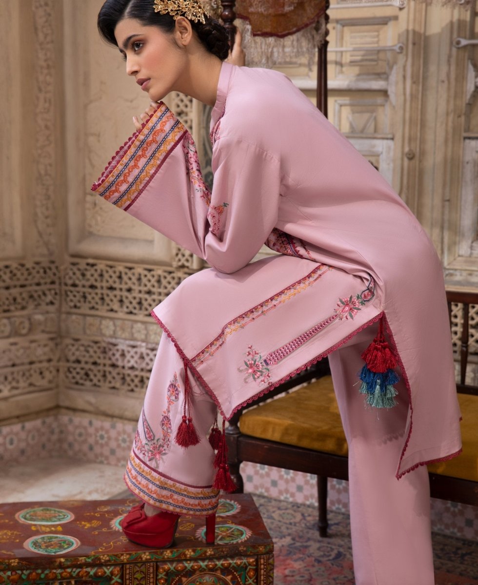 Embrace bold elegance with this deep crimson ensemble, featuring intricate ethnic patterns and a contemporary silhouette.